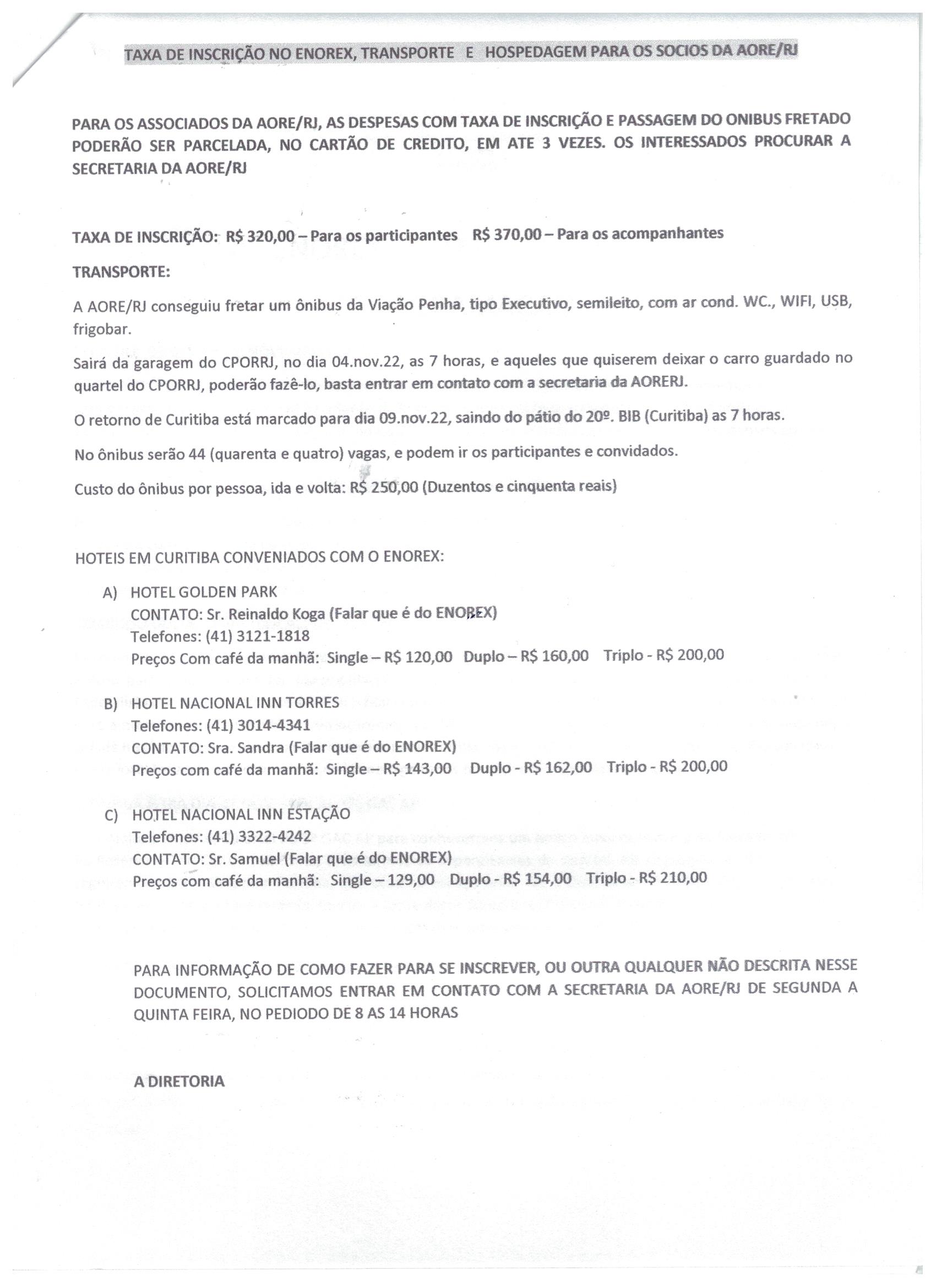 Para mais informações procurar a secretária da AORE/RJ pelo telefone: (21) 98486-2469 / 98486-2470(WhatsApp)