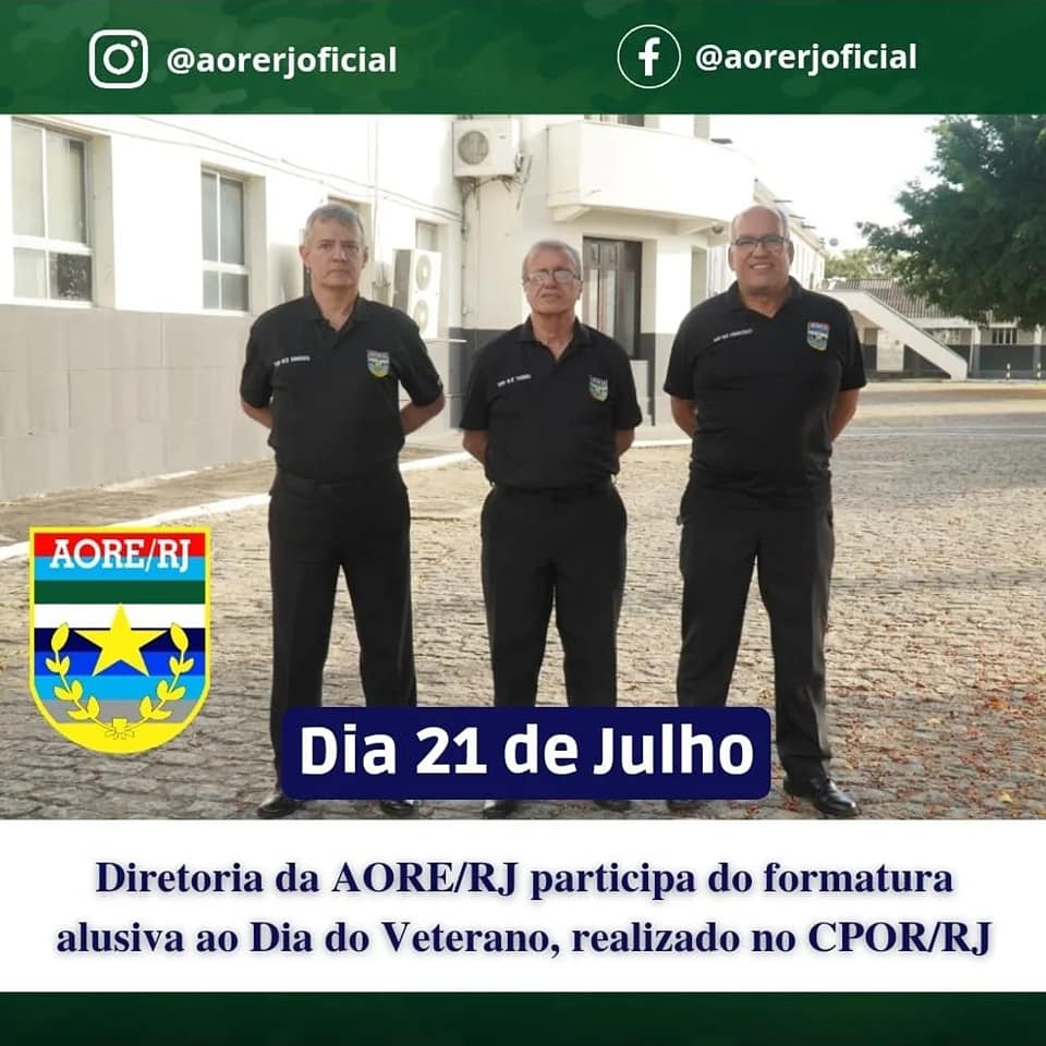 No dia 21 de julho de 2022, a convite do comandante do CPORRJ, Ten Cel Haddad, a AORE/RJ participou da formatura alusiva ao Dia do Veterano , realizada no pátio daquela unidade.