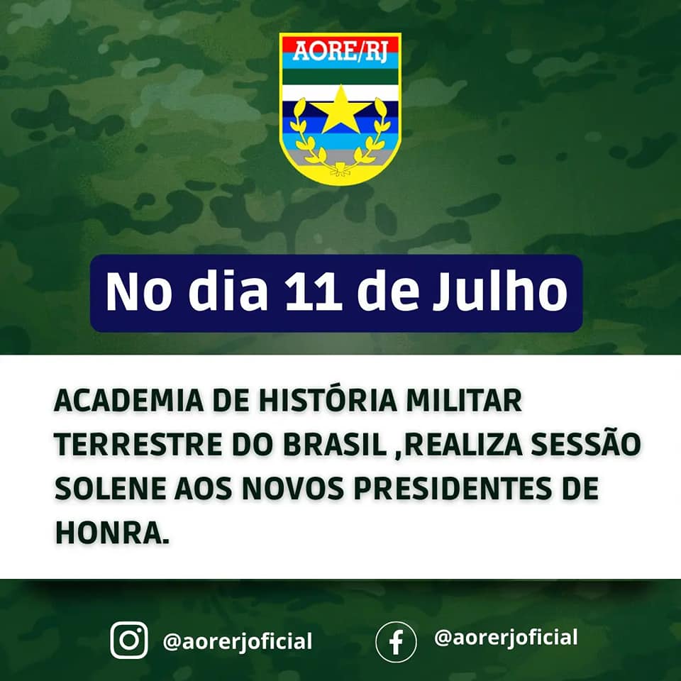 No dia 11 de julho de 2022, a Associação de Oficiais da Reserva do Rio de Janeiro (AORE/RJ) esteve presente Academia de História Militar Terrestre do Brasil a Casa da Força Expedicionária Brasileira (FEB), para participar da Sessão Solene Aos Novos Presidentes de Honra.