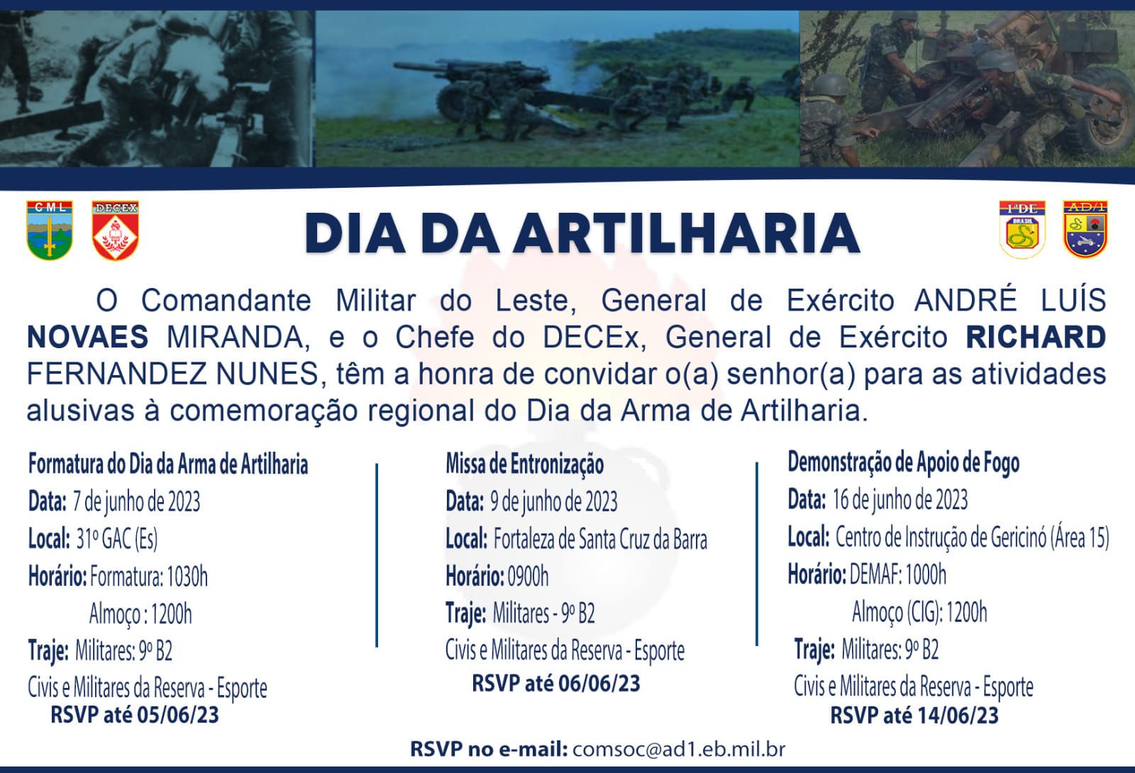 No evento alusivo ao Dia da Arma de Artilharia, realizado no CIG , a AORE/RJ se fez presente, com uma delegação composta pelos tenentes Simões, nosso vice presidente, Capella , Sava, Da Costa e Raggio, e Aspirante Goulart.
